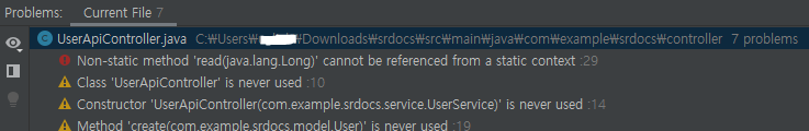 멀쩡하게 있는 서비스에 있는 메서드를 가져오는데 빨간줄을 띄우는 의문의 에러